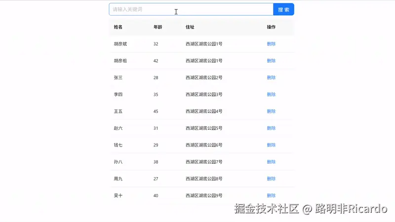 App6.jsx展示了如何结合多个Hooks实现完整的数据管理功能,包括数据获取、搜索和删除:
